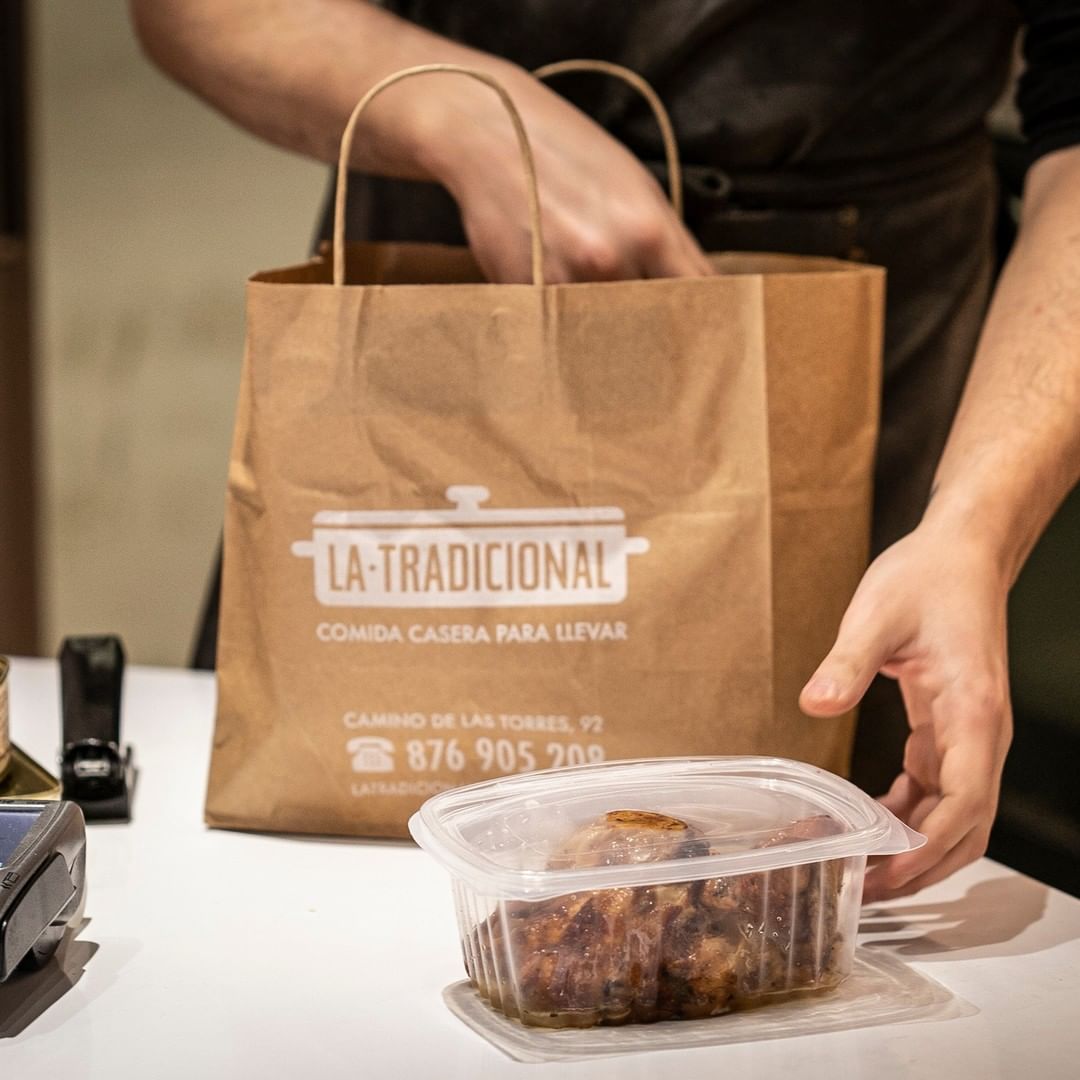 La Tradicional es un restaurante de comida casera, con menú diario, arroces y cenas de picoteo que solo funciona en comida para llevar o a domicilio. A través de su tienda online puedes programar tu pedido para recogerlo evitando colas, o programarlo para que te lo envíen a donde tú quieras.