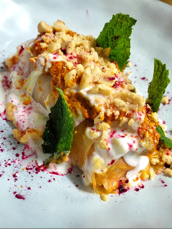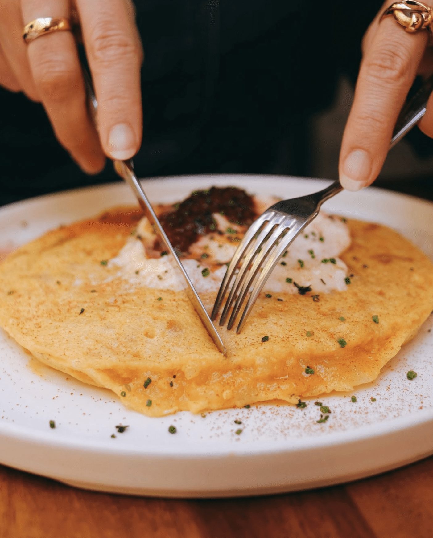 Su cocina se caracteriza por mezclar recetas tradicionales y platos sofisticados. Sartenica de migas del pastos con chistorra, uvas tiernas y huevo frito de corral es uno de los platos que puedes encontrar en su Menú Día del Pilar. Por 42 € por persona (incluye agua, vinos de Aragón y café) y Menú Infantil por 22 €, solo disponibles con reserva previa.