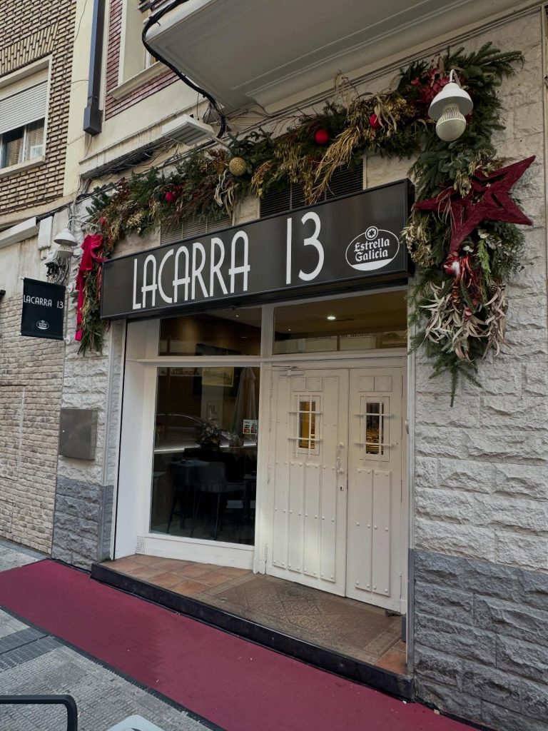 Más allá del tapeo, Lacarra 13 ofrece una carta corta pero bien pensada para comidas y cenas, con platos como ensaladas variadas, chipirones a la plancha, albóndigas, pollo al curry, canelón, cachopo, manitas de cerdo o caracoles, combinando cocina tradicional con pequeños guiños actuales. Un bar con esencia, producto y mucho oficio detrás, de los que se ganan al barrio… y a quien pasa por allí.