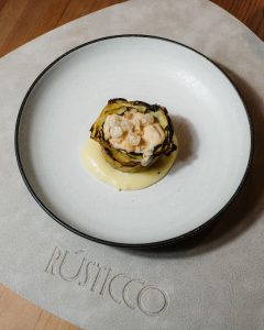 Rusticco es el proyecto gastronómico del Grupo Vaquer que ha abierto sus puertas hace apenas unos meses en Zaragoza. Un restaurante que apuesta por el regreso al origen, poniendo en valor el producto, la tradición y el sabor que solo aporta la cocina al fuego. El producto aragonés tiene un peso clave en la carta, con elaboraciones como la croqueta de Ternasco de Aragón con alioli de humo, las borrajas con patata y kokotxa de bacalao al pil-pil o la oreja con mojo de tomate seco de Caspe y lima.