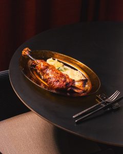 Es uno de los restaurantes de brasa más potentes de Zaragoza, con una propuesta centrada en el producto de máxima calidad y una ejecución técnica impecable. Su cocina gira en torno a una parrilla argentina con brasa de madera de encina, logrando una caramelización perfecta de carnes y pescados sin enmascarar su sabor. La carta bebe de la tradición vasco-francesa, con especial protagonismo de chuletones de distintas procedencias, lomo bajo y steak tartar de vaca gallega, así como pescados salvajes del Cantábrico cocinados a la brasa, como merluza de pincho, rodaballo o lubina. El apartado dulce es otro de sus grandes reclamos, con una tarta de queso cremosa que ya se ha posicionado entre las más reconocidas de la ciudad.