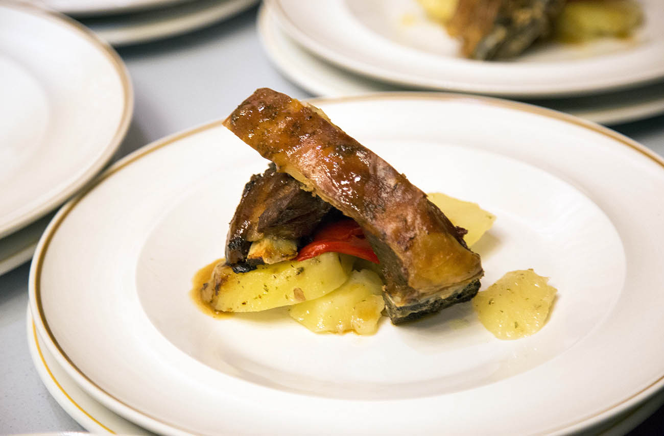 En su carta destacan platos emblemáticos como el ternasco de Aragón al horno (paletilla, jarretes, costillas o manitas), las migas con jamón y uva, las borrajas, las alubias blancas con oreja y chorizo, el bacalao o los pescados frescos del Cantábrico preparados al estilo tradicional. El apartado dulce mantiene el mismo nivel, con postres caseros como el helado de higos con nueces, el melocotón al vino tinto o el arroz con leche.