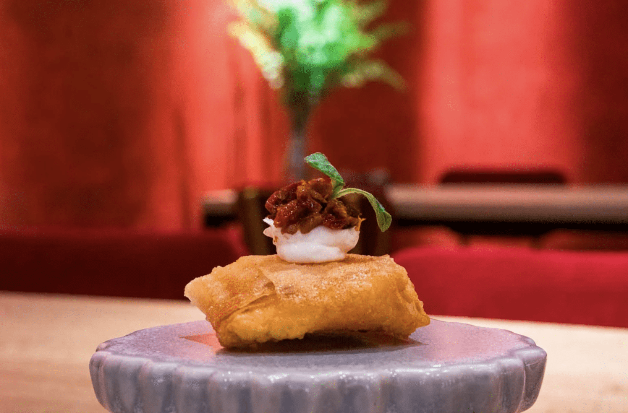 TONY EL GORDO: Cachopo de rubia gallega y jamón relleno de triguero, cebolla caramelizada, nuez tostada y una bechamel de jamón y kimchee.