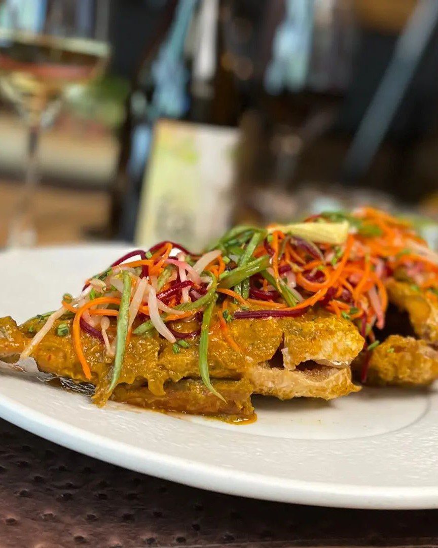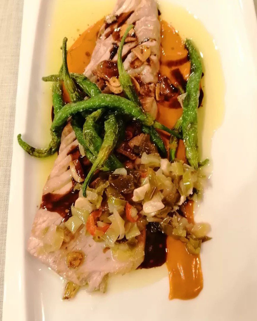 FISH MAR DE CÁDIZ: Cachopo de mero con jamón ibérico y ralladura de queso poyoyo.