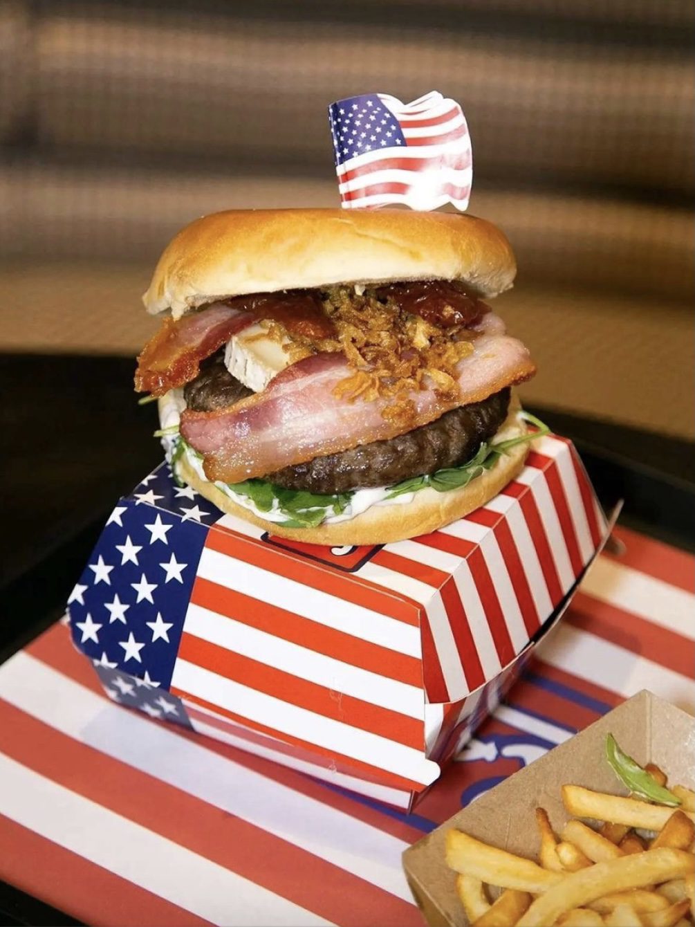 Además de los acompañamientos más populares de la cocina americana, las patatas fritas y los nuggets, su carta se completa con una amplia variedad de postres y batidos americanos.