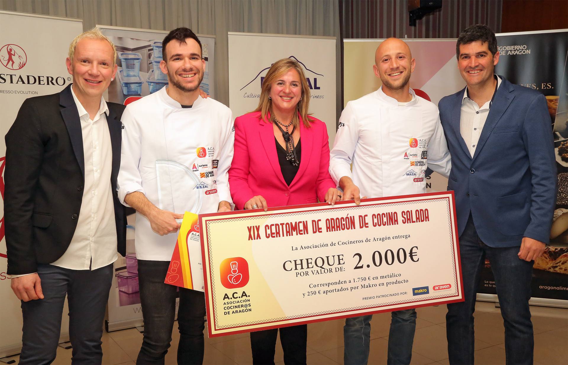Los terceros clasificados han sido José Ángel Quiroga y Juan Fernando Fuertes, que han recibido su premio de manos de Nerea Bescós, cocinera en El Doncel de Sigüenza y actual subcampeona nacional de gastronomía en el apartado de postre. El segundo premio, entregado por Luis Ibáñez, director de I+D de Cafés El Tostadero y dos veces campeón de Café Latte de España, ha recaído en manos de Jiayi (Lola) Fu y Alicia Liñán. Toño Rodríguez, chef del restaurante La Era de los Nogales y actual subcampeón nacional de gastronomía en el apartado de postre, ha sido el encargado de entregar el trofeo a los ganadores de esta primera edición del Certamen de Aragón de Cocina Dulce: Víctor Segura y Lucia Campos, que lo han conseguido con su “Semiesfera de chocolate Lacasa, café, bizcocho especiado y stracciatela de olivas negras de Aragón”. La pareja, que oficia en el Cancook de Zaragoza, se ha mostrado muy satisfecha con la organización, la colaboración de todo el personal de la escuela y muy sorprendida por el nivel. «Vamos a ir a por todas en el nacional, llevaremos el nombre de Aragón por todo lo alto», han dicho.