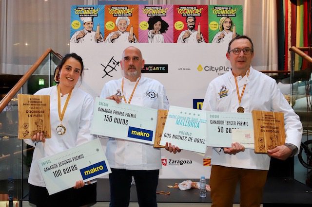 Si bien Ángel Palacios se alzó con el primer premio en esta primera edición del festival, todos los participantes recibieron una botella de vino ‘Sommos del Tubo’, la chaquetilla oficial de ‘Cocinicas’ y una medalla acreditativa grabada con el logo del festival. Por su parte, los ganadores disfrutarán de dos noches en el Hotel Sant Jaume de Mallorca, uno de los mejores complejos hoteleros de lujo de España; cinco cursos de cocina impartidos por el televisivo chef Daniel Iranzo, de La Pera Limonera de Aragón TV, y un cheque de 300 euros para gastar en Makro, entre otros.