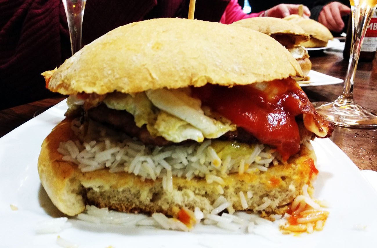 La propuesta de The Bronson Bar es, además de muy carnívora, muy aragonesa. La Monster lleva 250gr de carne 100% vacuno aragonés con doble de bacon, salsa cheddar, queso edamer, huevo a la plancha y jamón crujiente de Teruel.