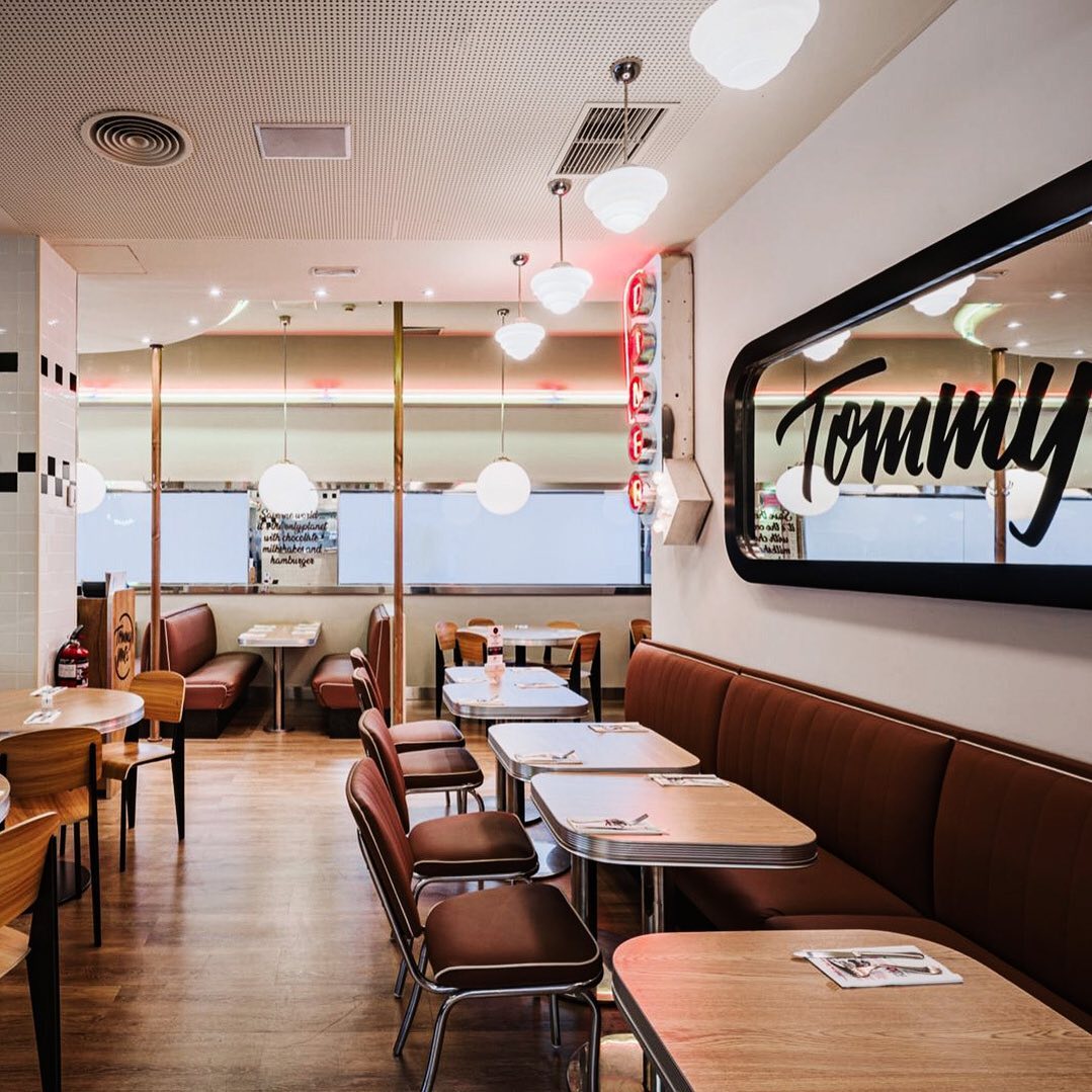 Un «American Diner» de los años 50 en toda su esencia, así es Tommy Mel’s. Con una estética, música e incluso vestuario que parece sacado de «Grease». Pero además de la decoración, su carta hace honor al auténtico sabor americano con entrantes como sus costillas de cerdo glaseadas con salsa barbacoa o hamburguesas como la ‘Smoke BBQ Burger’ servida en una cúpula de cristal para que sientas ese olorcito a barbacoa. Otra de sus especialidades son los batidos, algunos tan atrevidos como el Caramel Tommyshake de Kinder Bueno con nata, irresistible gofre y una barrita de chocolate con Maltesers.