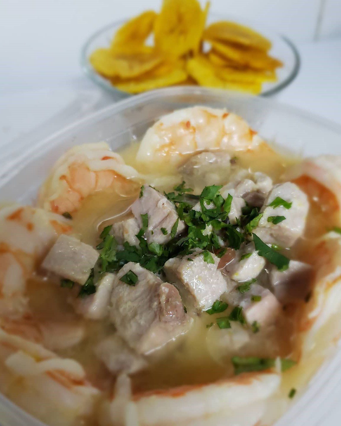 Terminamos nuestra ruta latina por Ecuador con la Cevichería Galápagos. Como su nombre indica, están especializados en ceviches, es decir, comida (suele ser pescado o marisco, pero también puede hacerse con carne) marinada en aliños cítricos. Aunque los ceviches suelen estar más asociados a la cultura gastronómica peruana, también son populares en los países latinoamericanos litorales del océano Pacífico, como Chile, Colombia, Costa Rica o Ecuador. Además de sus ceviches, también son típicos sus bolones de verde que puedes probar en los desayunos y que están elaborados con platanos verdes cocidos.