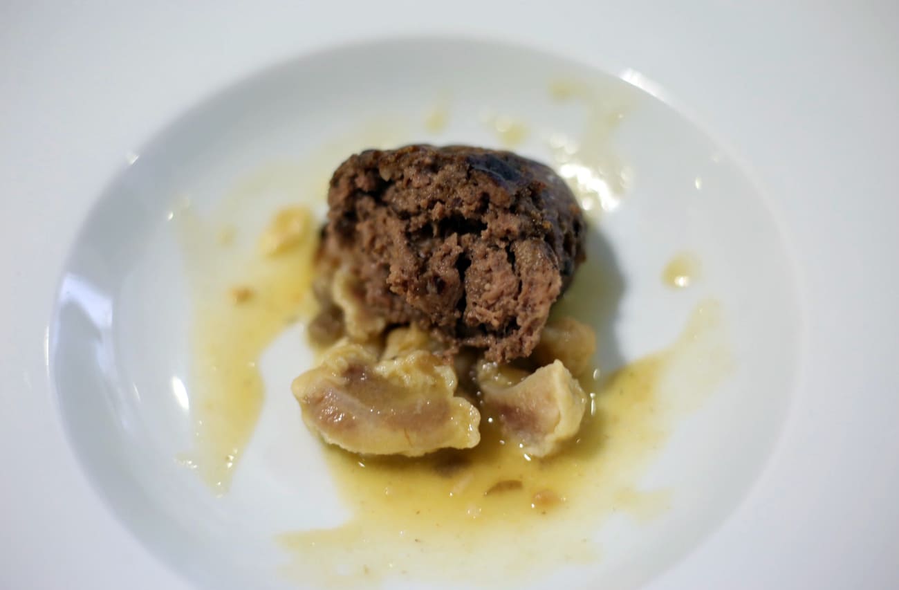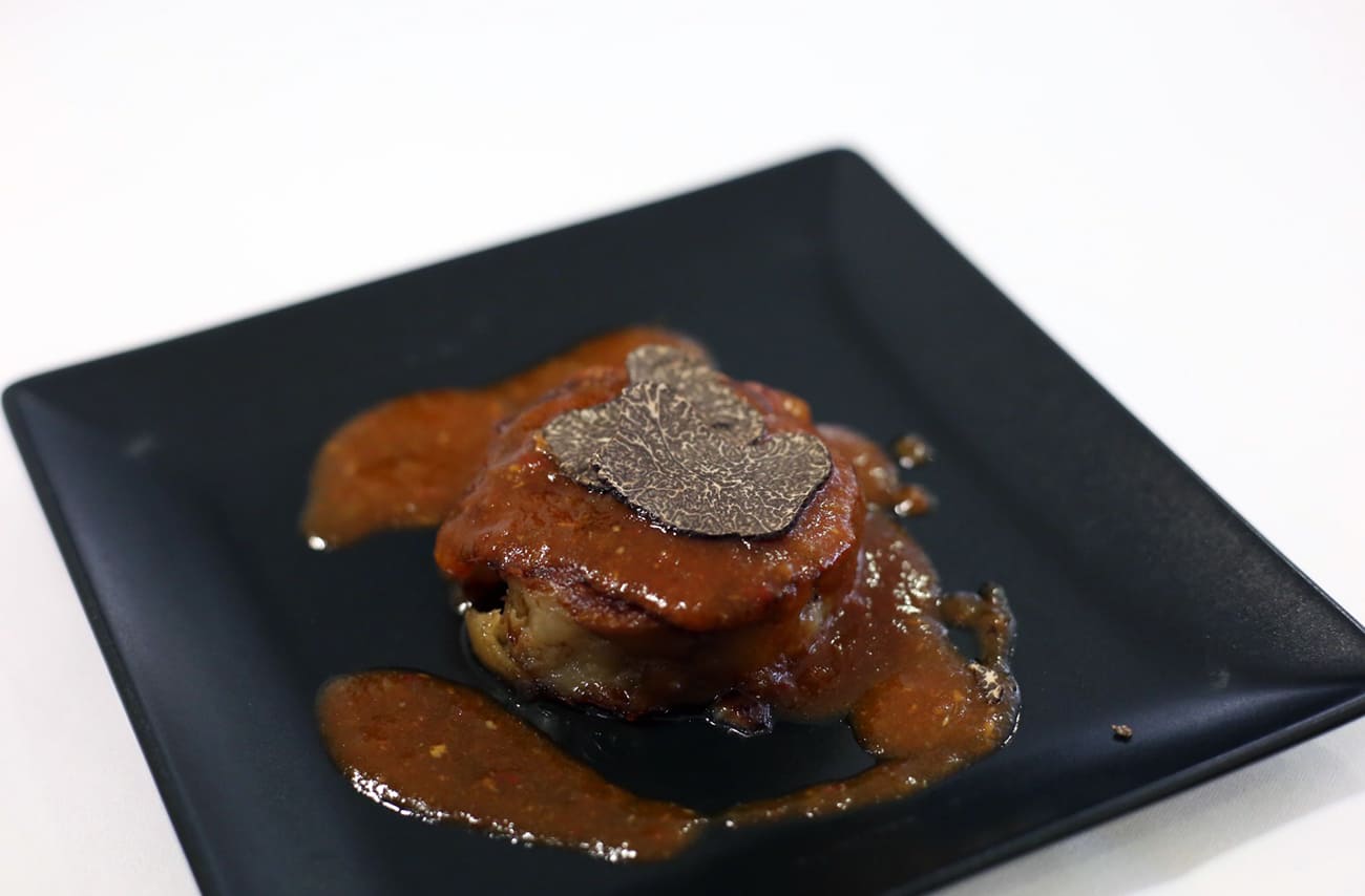• Manitas rellenas de longaniza y trufa con chilindrón gelatinoso