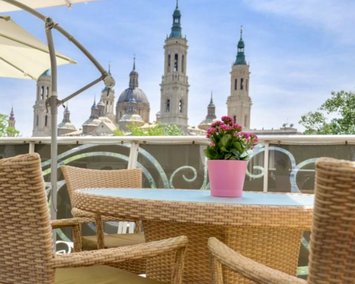 Si el tiempo acompaña, podrás disfrutar de una cena con una de las mejores vistas de la ciudad: El Pilar iluminado por la noche y el sonido del río Ebro de fondo.