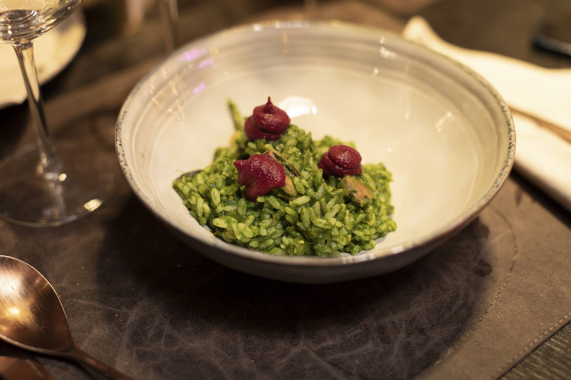 - Arroz de borraja y mejillones con emulsión de remolacha.