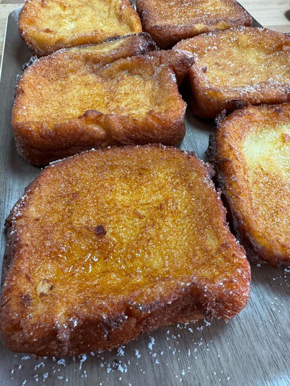 La reconocida Pastelería Tolosana, famosa por su Trenza de Almudévar, no podía faltar en esta selección. Para Semana Santa elaboran dos versiones de torrijas: las clásicas y unas irresistibles torrijas de Baileys, que aportan un toque diferente y cremoso al sabor tradicional. También preparan buñuelos artesanos, otro dulce típico de esta época del año.