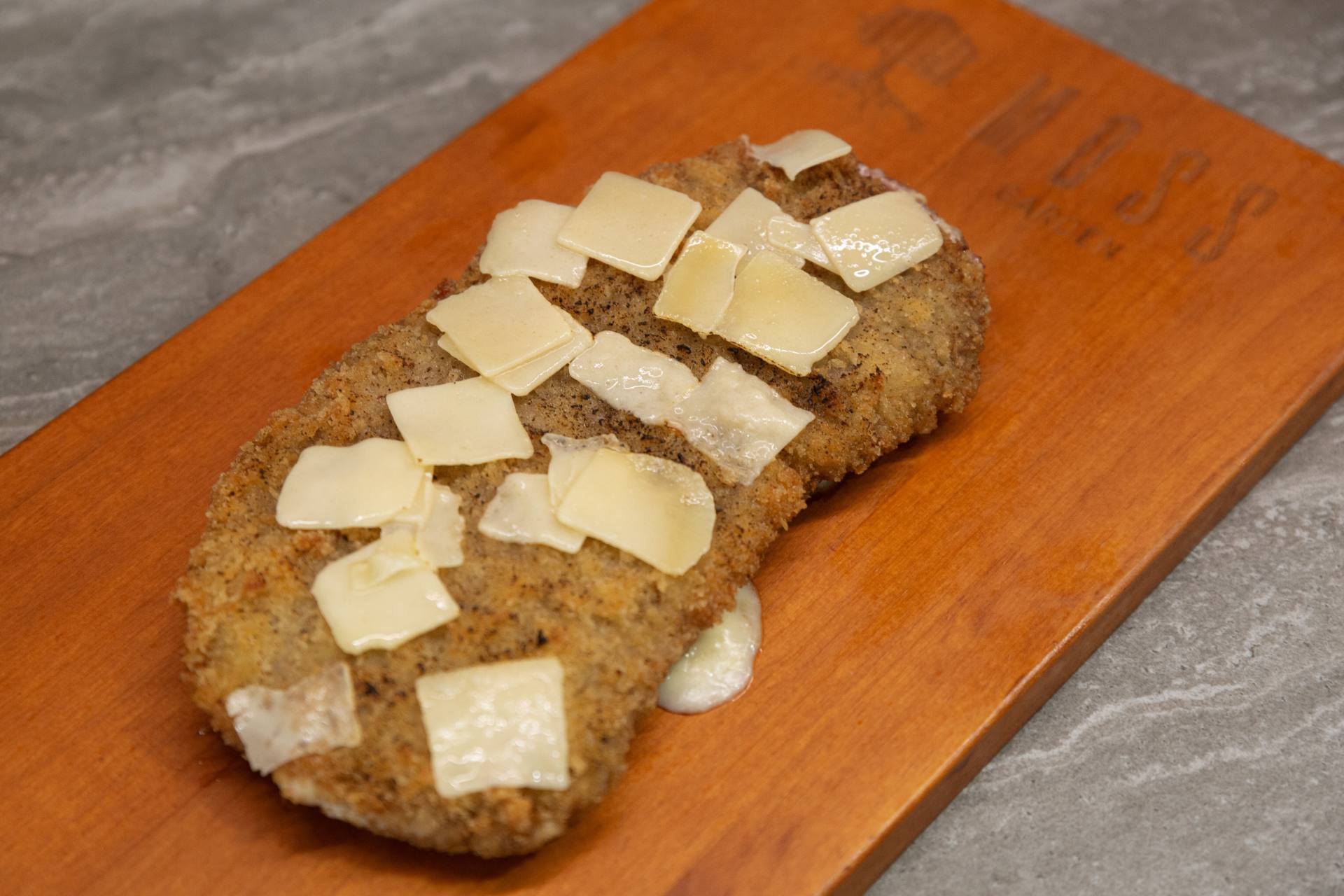 CACHOPO FRIED CHICKEN: Cachopo relleno de jamón y queso gorgonzola.