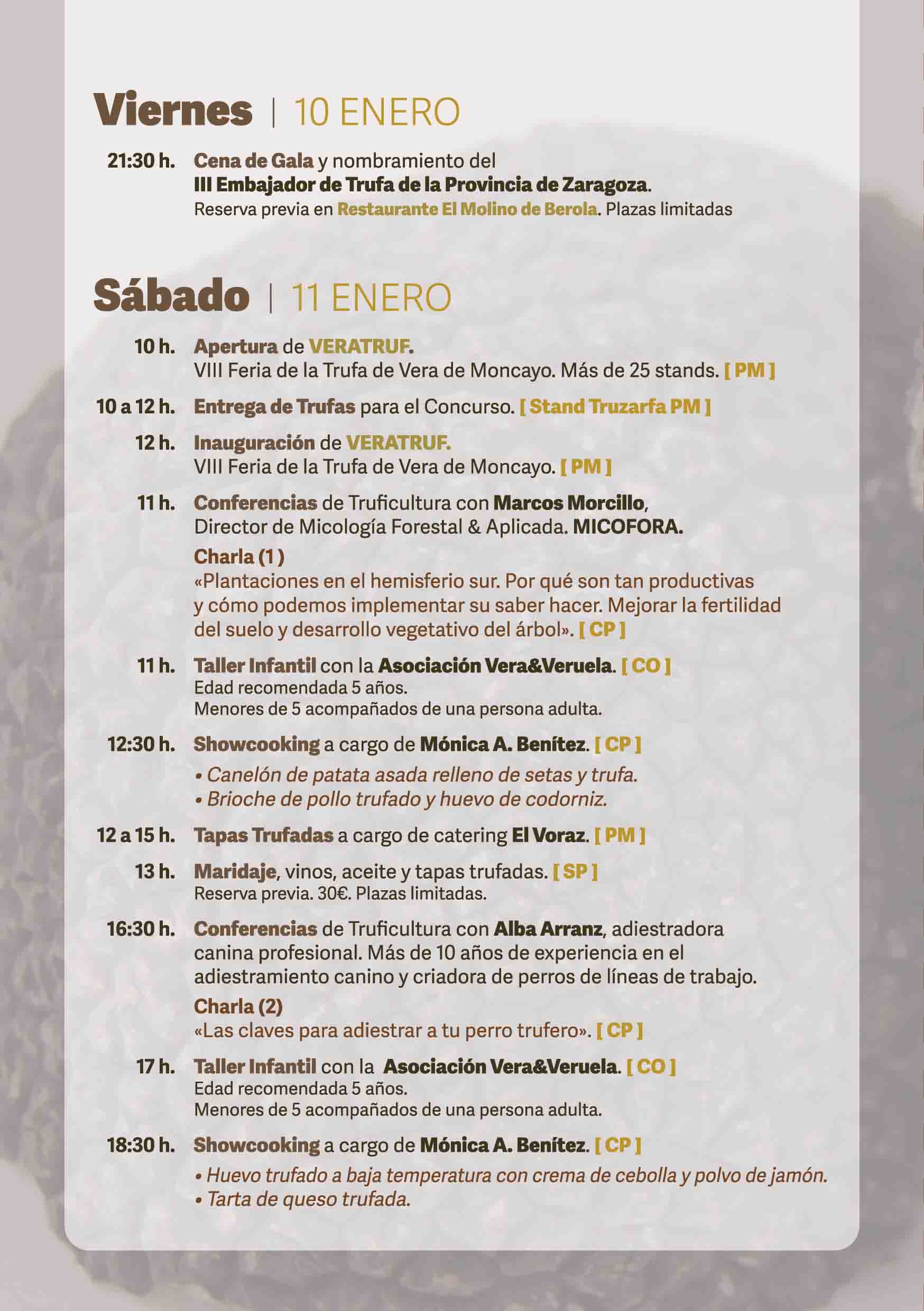 La feria ya va camino de convertirse en el referente de la provincia de Zaragoza, pero también de las vecinas comunidades de Navarra, La Rioja, Castilla y León y el País Vasco. Mantendrá su esquema de años anteriores, a lo largo del fin de semana del 11 y 12 de enero de 2025, con numerosas actividades además de las propias expositivas de la feria en sí, con más de 25 estands. Charlas para profesionales impartidas por Marcos Morcillo y Alba Arranz; maridaje con vino de la DOP Campo de Borja, aceite de oliva virgen extra de la DOP Sierra de Moncayo y trufa; demostraciones de cocina a cargo de la cocinera Mónica Benítez; talleres para niños y oferta de tapas trufadas.